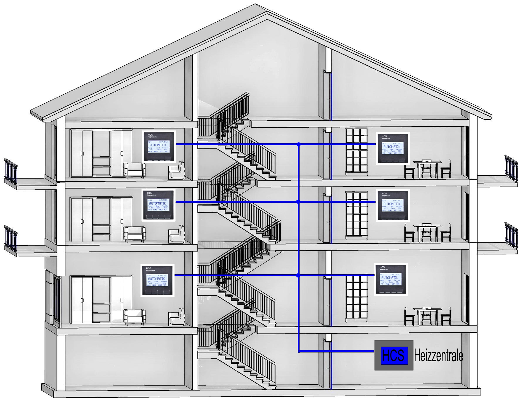 Wir dagegen liefern ein Komplettsystem mit Heizungsregelung (so entfällt die herkömmliche aussenfühlergesteuerte Heizungsregelung), sind sehr flexibel und liefern günstige Busbausteine.