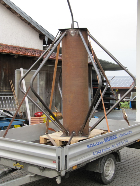 Transport des Wärmetauschers von der Firma Metallbau Huber nach Tengling. Wasserinhalt 320 Liter. |