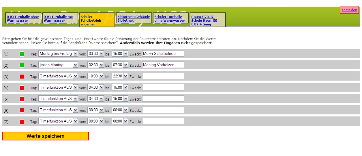 Durch unser Regelungssystme können verschiedene Nutzer (Schulleitung, Sportvereine oä) über das Internet einfach die eingenen Nutzungszeiten eingeben und somit aktiv bei der Energieeinsparung mithelfen.